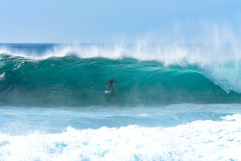 This particular day didn't start that good. It was a little overcast, slightly windy but I’d just arrived on the island and the waves were pumping, so we had to go out. We set out to look for waves with my friend Tommy (who I own foilsurfing.club with, a company dedicated to teaching foiling, wingfoiling and providing tow foiling for riders who want to catch three-minute long waves…) and my French teammate Martin Vitry, who happens to be one of the best SUP racers in Europe!