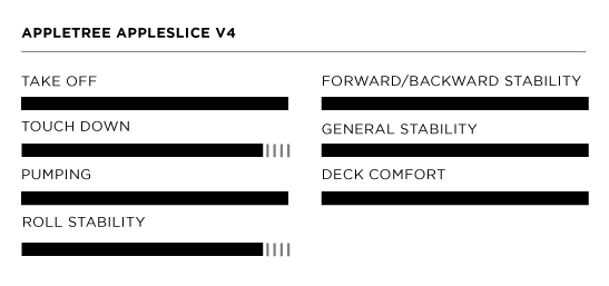 Four generations in, thoughtful and incremental improvements build on an already solid platform and Appletree continue to innovate and keep up with modern discipline developments in their usual agile style. More volume under the front foot not only enhances the board’s suitability for parawing which has more of a flat forward pull than wing, but also improves surface balance for wingfoiling and makes a friendlier and more accessible board than the V3 in equivalent volumes. Whilst the new Slice is both longer and narrower than previous, that volume placement means it still offers similar levels of stability as the previous generation, perhaps even more, but still differentiates itself from a mid-length shape to more than justify its existence, particularly in the roll axis.