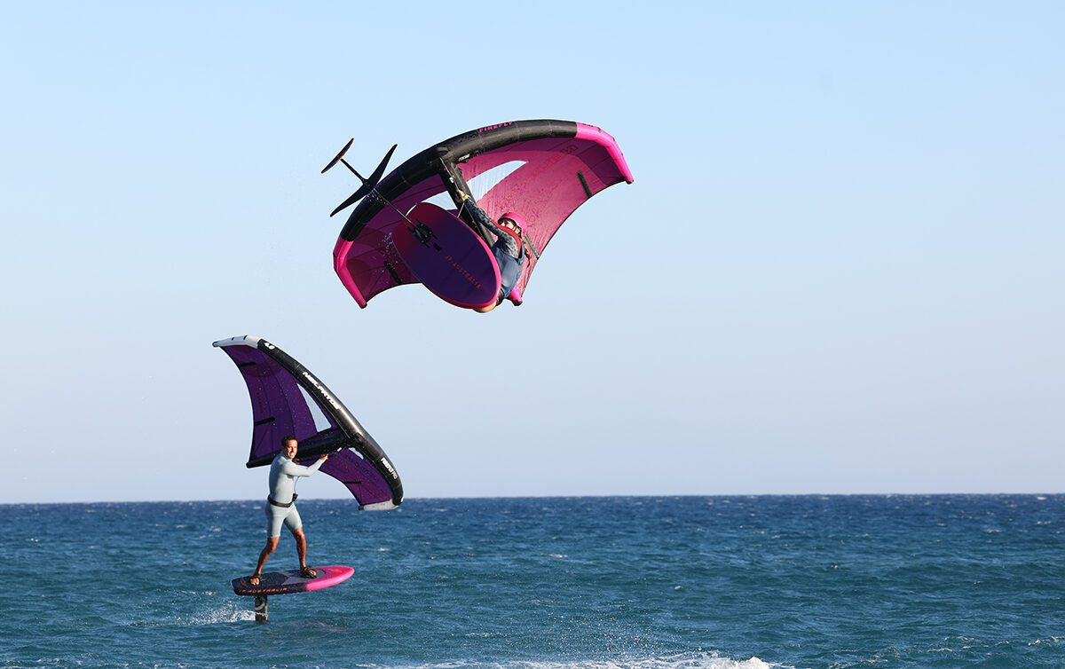 The season runs from May to the end of October. The Meltemi is most reliable from June to September, delivering stable conditions that average around force 5–6 Beaufort. While May can still be a bit chilly, late September and October offer a special charm: warm water, clear light, and wideopen space on the sea, where the sun sets the surface sparkling as you ride. In case the wind is low, Procenter provides a selection of lightwind wingfoil gear, ensuring easy takeoffs and more time flying even in marginal conditions.